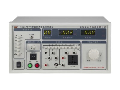 医用泄漏电流测试仪又称接触电流测试仪用于测量电器的工作电源(或其它电源)通过绝缘或分布参数阻抗产生的与工作无关的泄漏,其输入阻抗模拟人体阻抗,符合GB9706.1-2020要求。RK2675YM系列医用泄漏测试仪产品是按照IEC、ISO、BS、UL、JIS等国际国内的安全标准要求而设计。可根据不同安全标准以及用户的不同需求连续任意设定泄漏电流报警值;